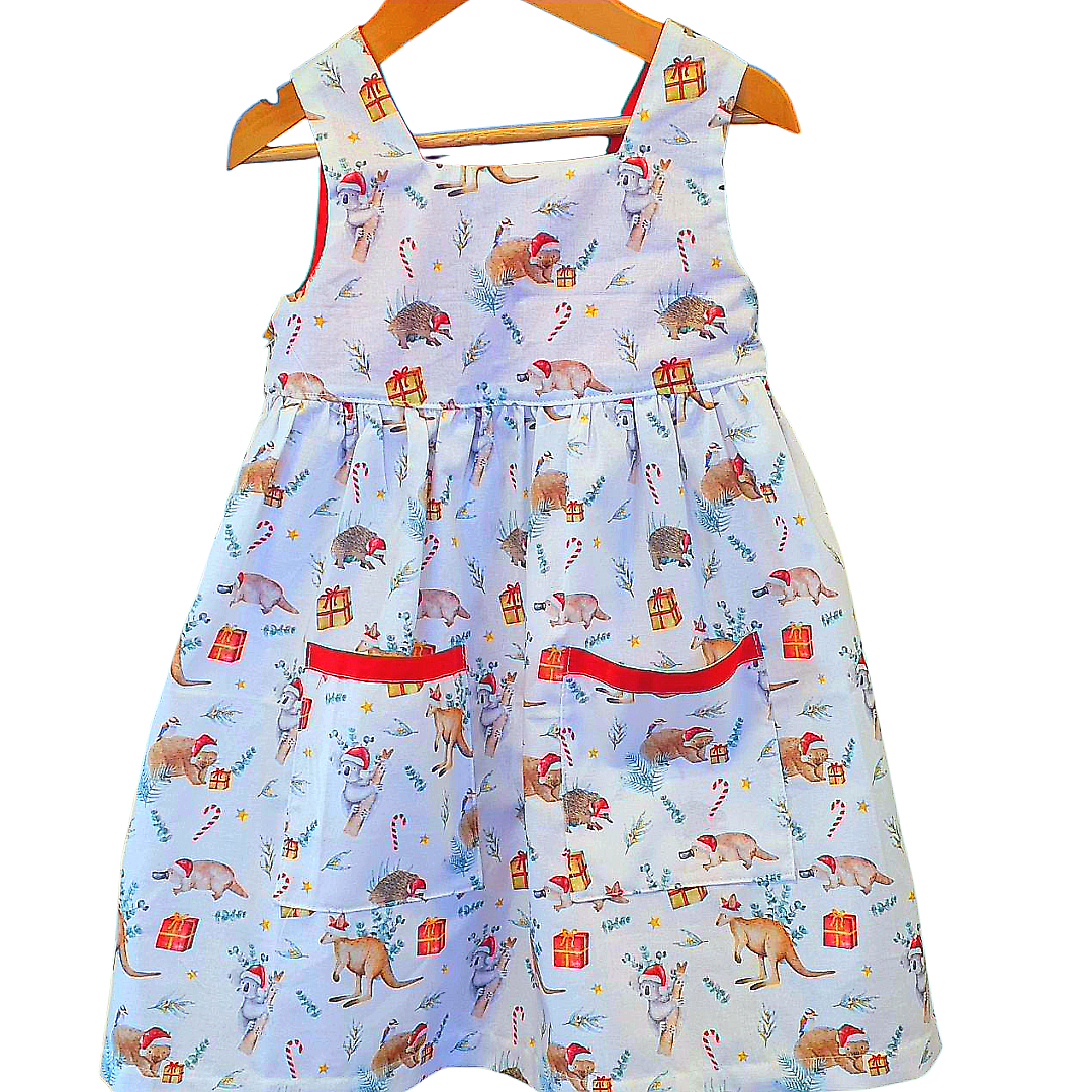 Aussie Animals Christmas Dress – Handmade Girls Cotton Dress (Limited Edition